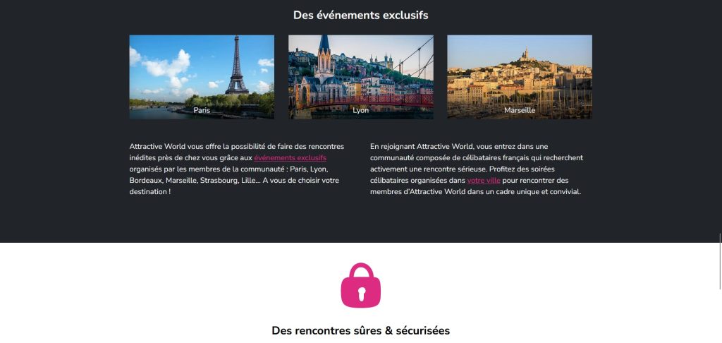 Sur Attractive World, il est impératif de créer un profil détaillé de grande qualité. Sinon, vous risquez de ne pas passer la phase de modération, qui est notoirement sélective. Si votre profil est approuvé, c'est la preuve qu'il est déjà de haute qualité. Une caractéristique distinctive d'Attractive World qui le démarque des autres sites réside dans les événements organisés par ses membres.