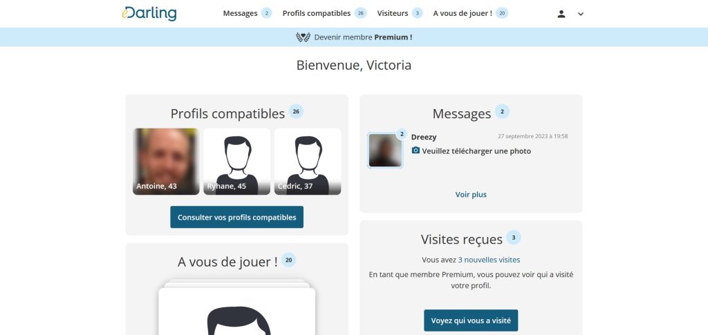 L'option "A vous de Jouer" est également proposée sur eDarling, permettant aux personnes pressées de parcourir des profils succincts (incluant une photo et quelques informations) et de décider rapidement si ces profils éveillent leur intérêt. En cas d'un avis favorable, le membre concerné en est immédiatement notifié.