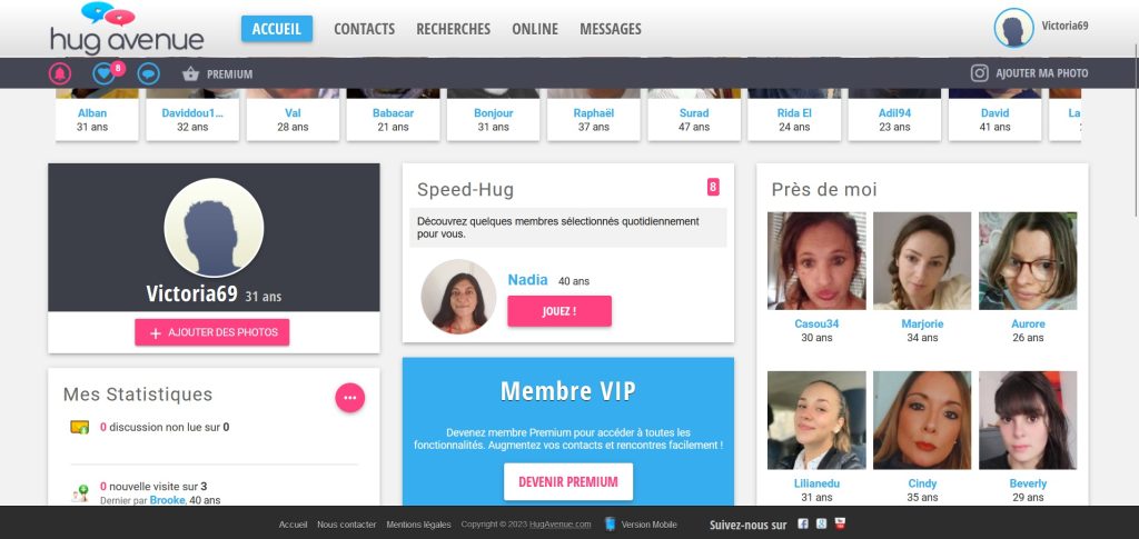 - Suggestions de profils : Sur sa page d'accueil, HugAvenue met en avant une sélection de profils qui pourraient correspondre à vos attentes, vous proposant des partenaires potentiels.